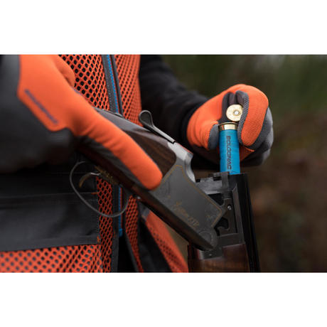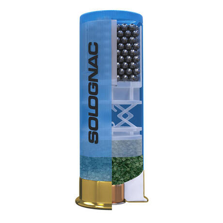 Cartouche polyvalente pour toutes les disciplines FFBT avec bourre exclusive Solognac offrant une bonne régularité, ainsi qu'une gerbe homogène.