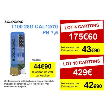 CARTOUCHE BALL TRAP T100 28g CAL12/70 PLOMB N°7,5 X250